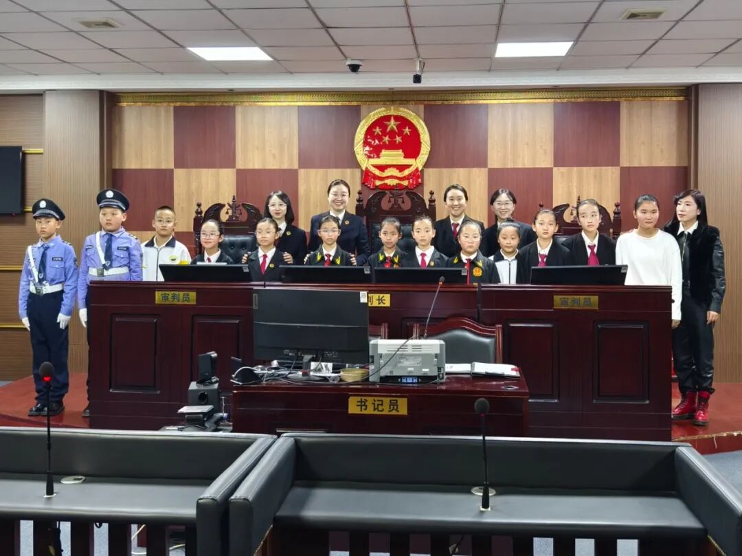 “现在开庭!”随着“小法官”稚嫩却坚定的声音响起,一记清脆的法槌声敲开了模拟法庭的序幕。孩子们穿着模拟版法律职业服装,坐在各自的位置上。这场模拟庭审聚焦一起十六周岁被告人,在游戏城看到被害人放在游戏桌上的手机,一时冲动将手机盗走,被当场发现,掏出随身携带的小刀威胁被害人的案件。围绕“被告人构成盗窃罪还是转化抢劫罪”,“小检察官”和“小辩护人”展开了激烈辩论。孩子们在庭审中理清辩论焦点,顺利完成举证质证、法庭辩论等环节。庭审结束后,“小法官”宣判:“被告人犯抢劫罪,判处有期徒刑一年,缓刑二年,并处罚金人民币5000元”。宣判完毕,孩子们还意犹未尽地说:“原来法律这么严谨,不同的行为会有不同的罪名,做事真的不能冲动,一定要讲规矩、守法律。”