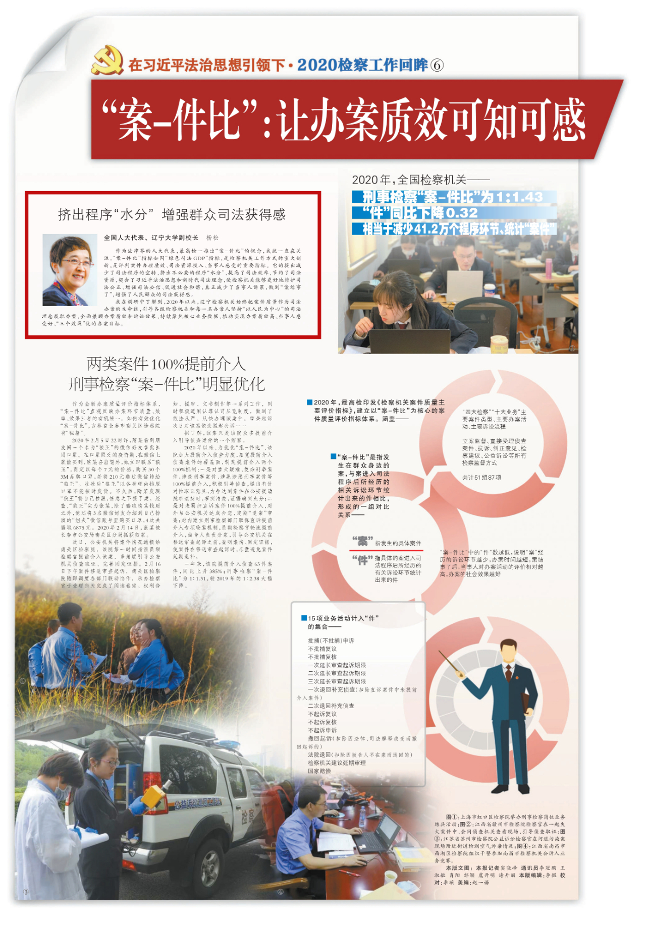 2021年2月9日,《检察日报》四版开设:“‘案-件比’:让办案质效可知可感”专栏,本期刊登了全国人大代表、辽宁大学副校长杨松的相关观点,内容如下: